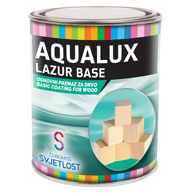 AQUALUX LAZUR BASE je osnovni premaz za drvo namijenjen za sve vrste drvenih konstrukcija izloženih vanjskim utjecajima, čiji je film sa biocidnom aktivnom tvari zaštićen od plijesni, gljivica i algi. Upotrebljava se za zaštitu objekata koji će biti izloženi atmosferilijama, prije nanošenja AQUALUX LAZURE.