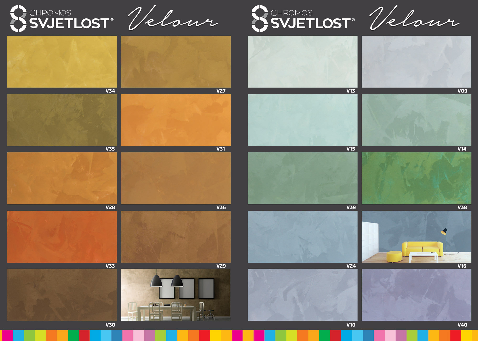 Proizvodi se u srebrnoj i zlatnoj nijansi, a primjenom Top Mix sustava za strojno nijansiranje CHROMOS-SVJETLOST može se dobiti čitav niz nijansi iz nove BRAVO INSPIRE VELOUR ton karte.